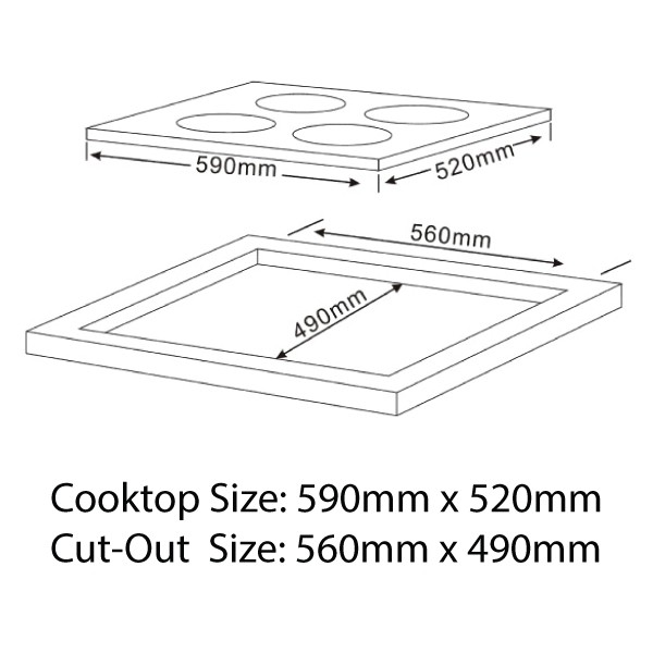 Surface dimensions (mm): 520d x 590w x 52h