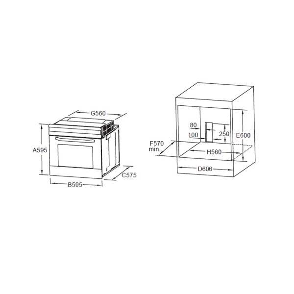 Dimensions (mm): 575d x 595w x 595h