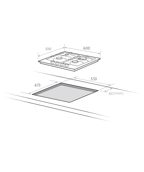 Cut-out dimensions (mm): 473d x 553w