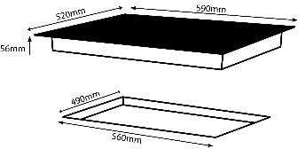 Surface dimensions (mm): 520d x 590w x 56h