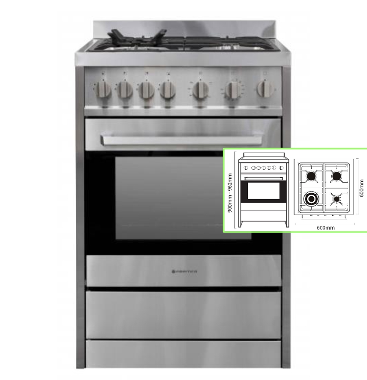 GENERAL INFO Model: Parmco FS 600 GAS-GAS Condition: Brand new Warranty: 7 years __________ To cater for every self-made Kiwi Chef’s kitchen, Parmco have developed the FS600 GAS-GAS stove. Now you can enjoy the gas-equivalent of Parmco's budget-conscious, space-saving, trendy 60cm cooker range. Buy today to begin your experience. __________ SPECIFICATIONS Stovetop | Oven type: Gas | Gas Stovetop gas componentry: Italian-made SABAF® Stovetop and oven jetting: CNG or LPG Stovetop and oven ignition system: Automatic w/manual override Stovetop and oven safety: Flame-out fail-safe Stovetop burner(s): 4 (1 double-crown w/wok cradle, 3 standard) Oven capacity (L): ~70 Oven cooking functions: 3 (Grill, Rotisserie Grill; Bottom element only) Oven timer: Analog (120 mins w/10 min demarcation) oven temperature control: Analog (60° min w/20° demarcation) Dimensions (mm): 600d x 600w x 900-960h FEATURES • Cast iron trivets • Triple-glazed door (Cool Touch Door Technology) • Splashback supplied (600w x 60h) Only available in stainless