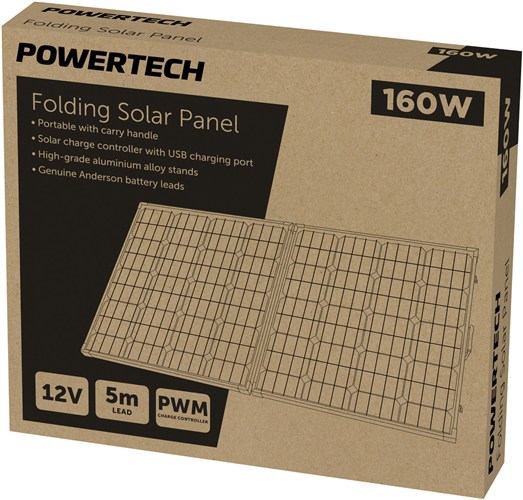 If you're hungry for power yet looking out for a portable power solution, the Powertech 12V 160W Folding Solar Panel is the answer! A comprehensive solar power system made with top grade monocrystalline solar cells, this unit will bail you from most power crisis. This product includes two 80 Watt Monocrystalline Solar Panels, one 10 Amp PWM solar Charge Controller with LED indicators for power regulation and USB port, 5m extension lead with genuine Anderson connectors, additional extension leads (Anderson to eye terminals and Anderson to Alligator Clips) for easy connections and a heavy duty bag for safe portability. If you are looking for a portable solar solution with fast and easy installation then this the perfect kit for you! Equipped with a carrying handle, durable fold out legs that allow for varying degrees of tilt and industry standard latches this is the ultimate solution!