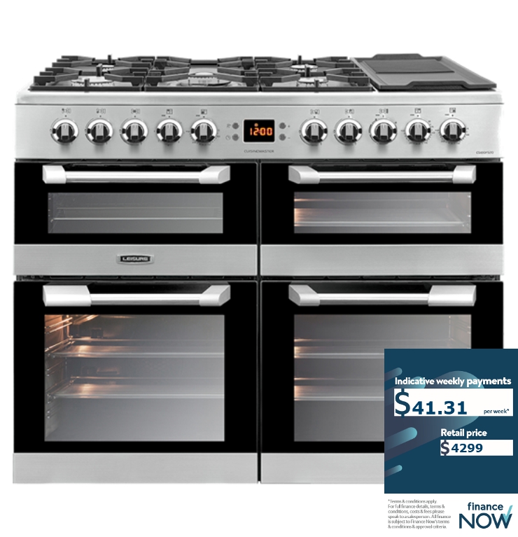 This Cuisinemaster range cooker's striking, contemporary design challenges the thinking that range cookers are reserved for old country homes. Three separate ovens, a slow cooking setting, and a dedicated grill give you the flexibility to cook multiple dishes at once. And, the five-burner gas hob also includes a wok burner and griddling area, so you'll be able to stir-fry your spicy rice noodles while your salmon chargrills on the griddle.