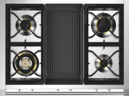 Stovetop burner(s): 4 (1 double-crown w/wok cradle, 3 standard)