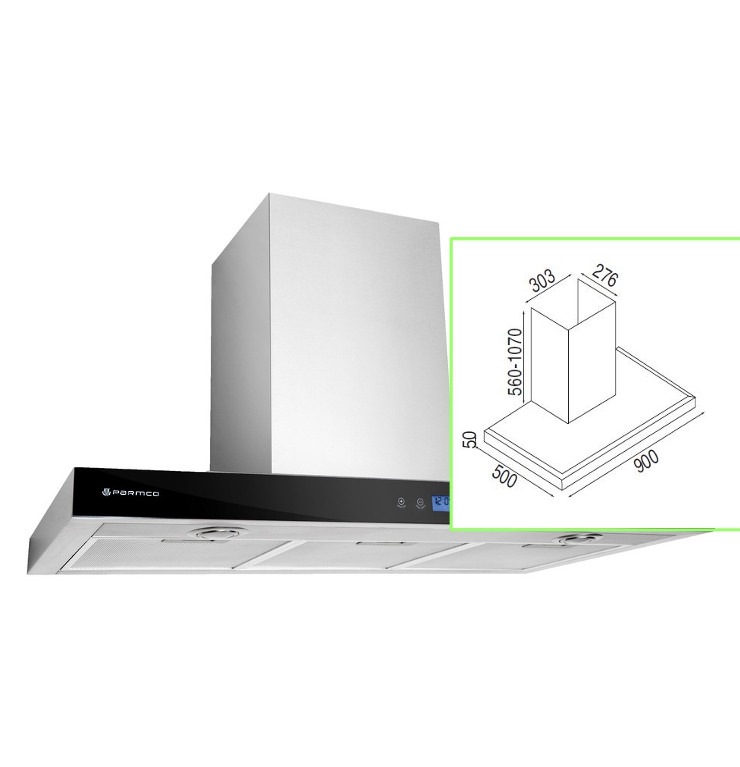 GENERAL INFO Model: Parmco RLCD-9G-1000L Condition: Brand new Warranty: 7 years Sleek touch control panels coupled with superb illumination powered by LED lights and a selection of fan speeds and features make this Parmco canopy an effective way of ventilating your kitchen. Creating your own kitchen style has never been easier. Also, exclusive to Parmco is the “remote motoring” option which will significantly reduce noise! SPECIFICATIONS Range hood style: Box-canopy Air flow (m³/hr): 1000 Speed setting(s): 3 Control(s): Touch Filter(s): 3 x aluminium mesh Light(s): 2 x LED Circulation: Can be re-circulated (filters sold separately) Ducting outlet (mm): 150 (ducting sold separately, see below for offers) _____ DUCTING OFFERS: A soffit or wall kit for this rangehood is available for $49.95. The soffit kit (SK) includes 1 x 3000l x 150Ø length of flexible aluminium ducting, 1 x louvred outlet, duct clamps and stainless steel fixing screws. The wall kit (WK) includes 1 x 600l x 150Ø length of semi-rigid aluminium ducting, 1 x weatherproof cowl with backdraft damper, duct clamps and stainless steel fixing screws. Customers from Auckland (AKL) and Tauranga (TGA) who purchase a ducting kit with this hood will receive free delivery; they can do so in the "Shipping Options" below. For all other customers interested in a ducting kit for this range hood, please let us know via the "Questions & Answers" field. _____ Noise rating (dB): 63 (this is the equivalent of noise generated by an air conditioning unit or conversational speech) Dimensions (mm): 500d x 900w x 610-1120h