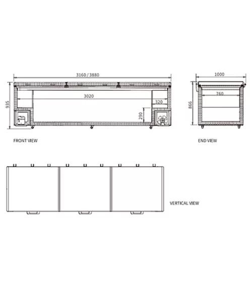 Model : BD/BC-2380 Temperature : 0~10ºC or -7ºC or -35ºC Volume : 1800L Power : 656W Weight : 180KG Refrigerant : R290 Size : 3880MM*1000MM*935MM