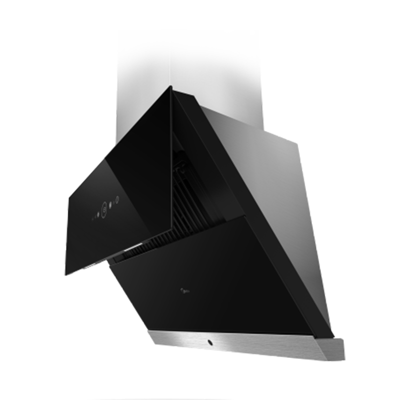 MIDEA 90CM BLACK-GLASS ANGLED RANGEHOOD *NEW*
