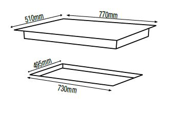 Cut-out dimensions (mm): 495d x 730w