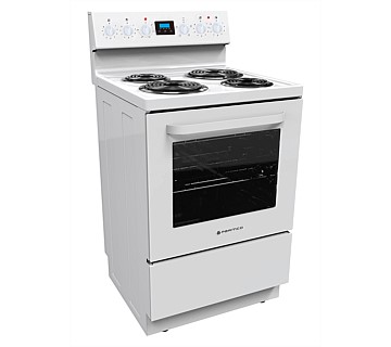 76 litres useable capacity 4 oven functions 4 radiant coil electric cooktop Control knobs Digital timer Utility drawer Triple glazed door H 1145 x W 600 x D 610 mm Manufacturer's Warranty: 7 year warranty.