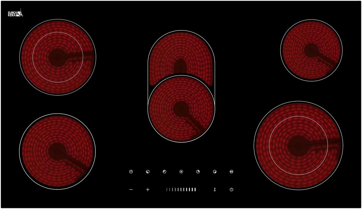 9 power stage settings Eurokera Glass Auto switch off safety Sensor touch Child lock Appliance Size W 900 mm x D 520 mm Cut-out size W 870 mm x D 485 mm 24 Month Warranty